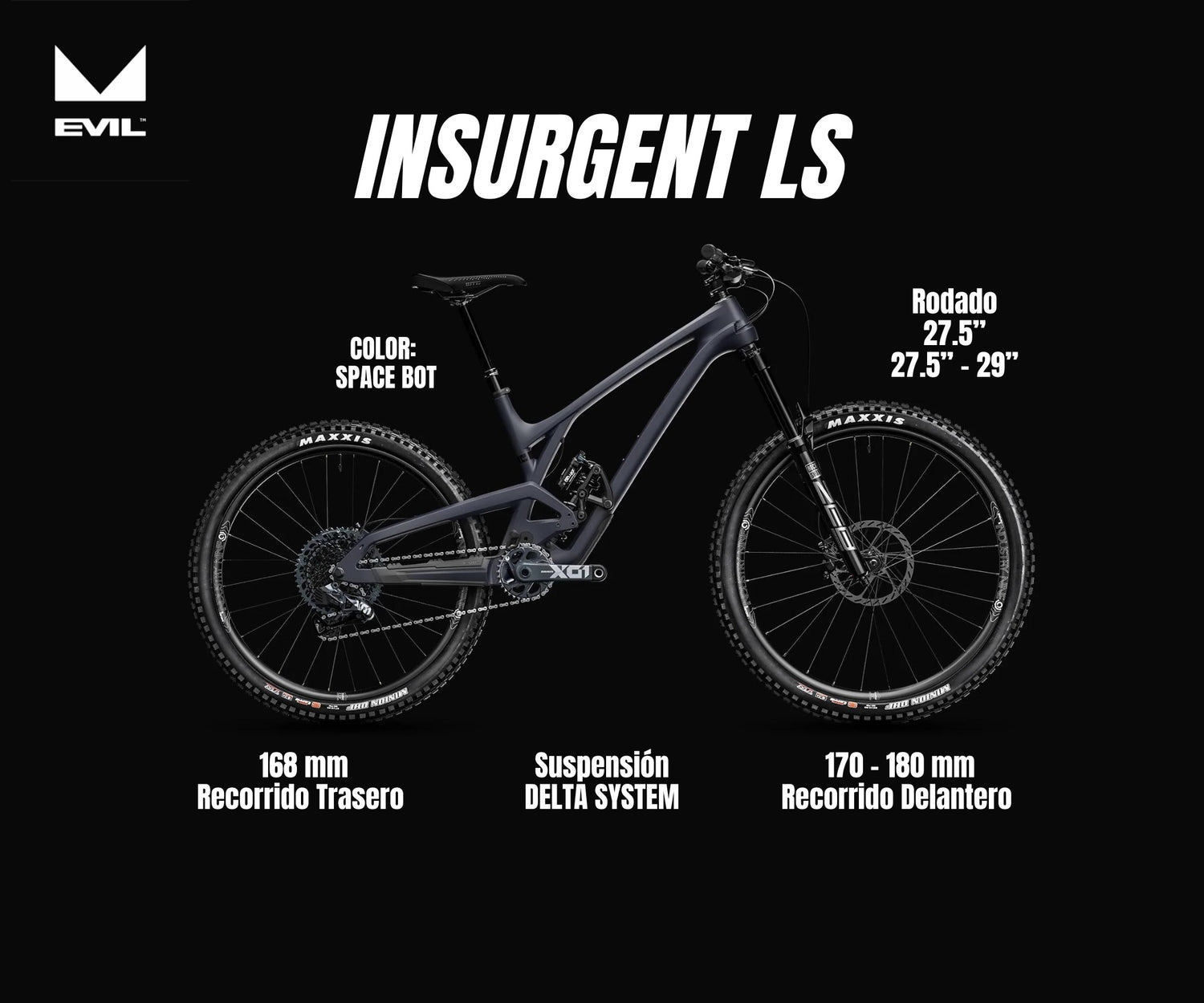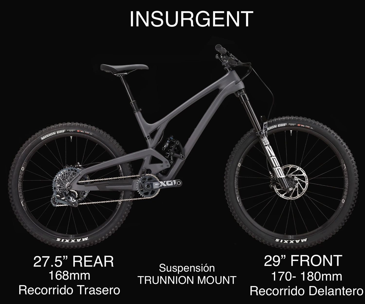 El Insurgent está disponible en versión MX completa de 27,5" y de ruedas mixtas de 27.5/29". Ruedas pequeñas para senderos, saltos, látigos y monte, o MX para una mayor tracción de la rueda delantera, líneas más empinadas, losas pesadas y trituración de chunder. 27.5 ”nunca murió.