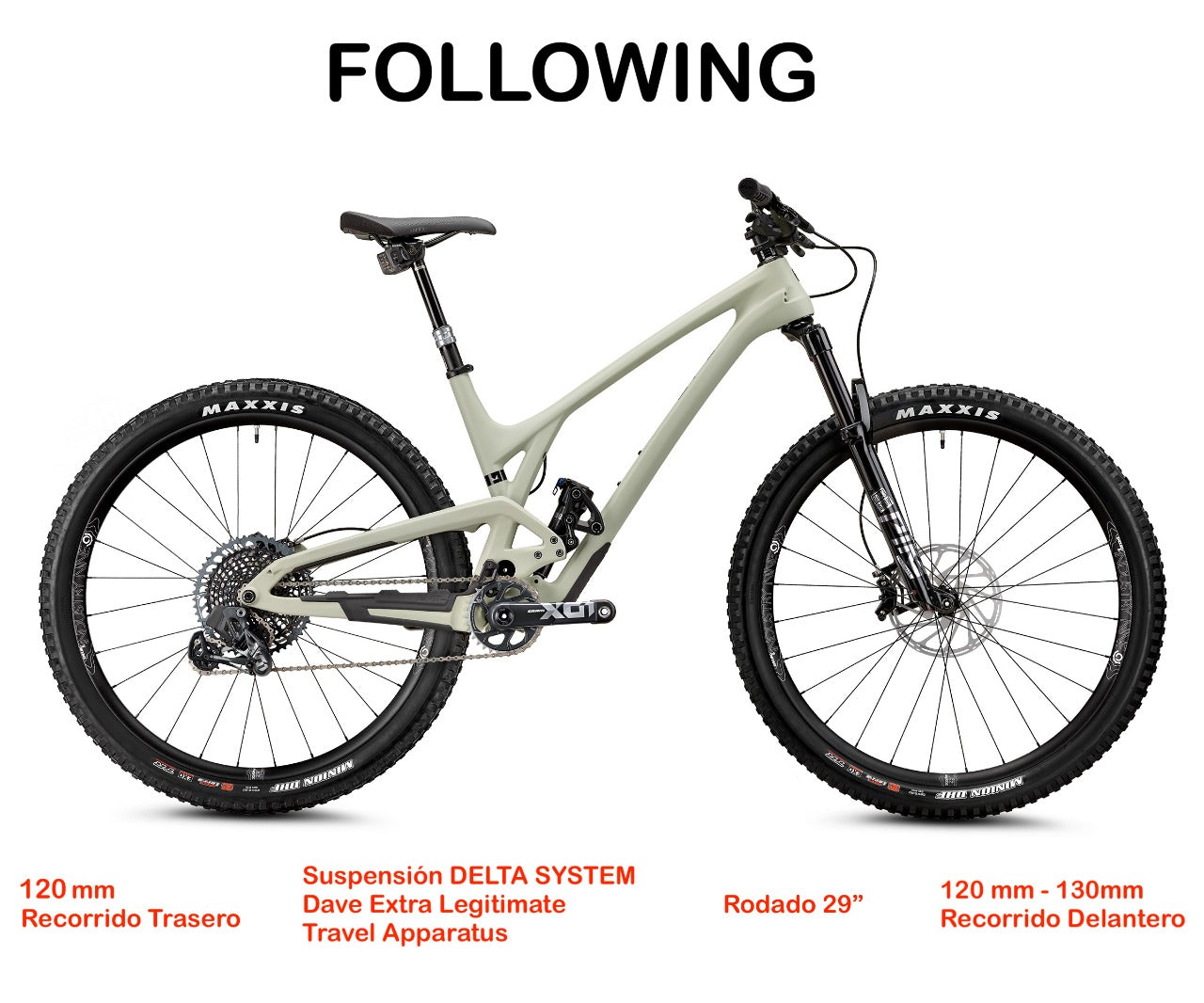 The Following Carbono, 120mm 29er que mantiene el peso al mínimo. Subirá todo el día y ren terraceria, montes, brechas, jardines de rocas.
