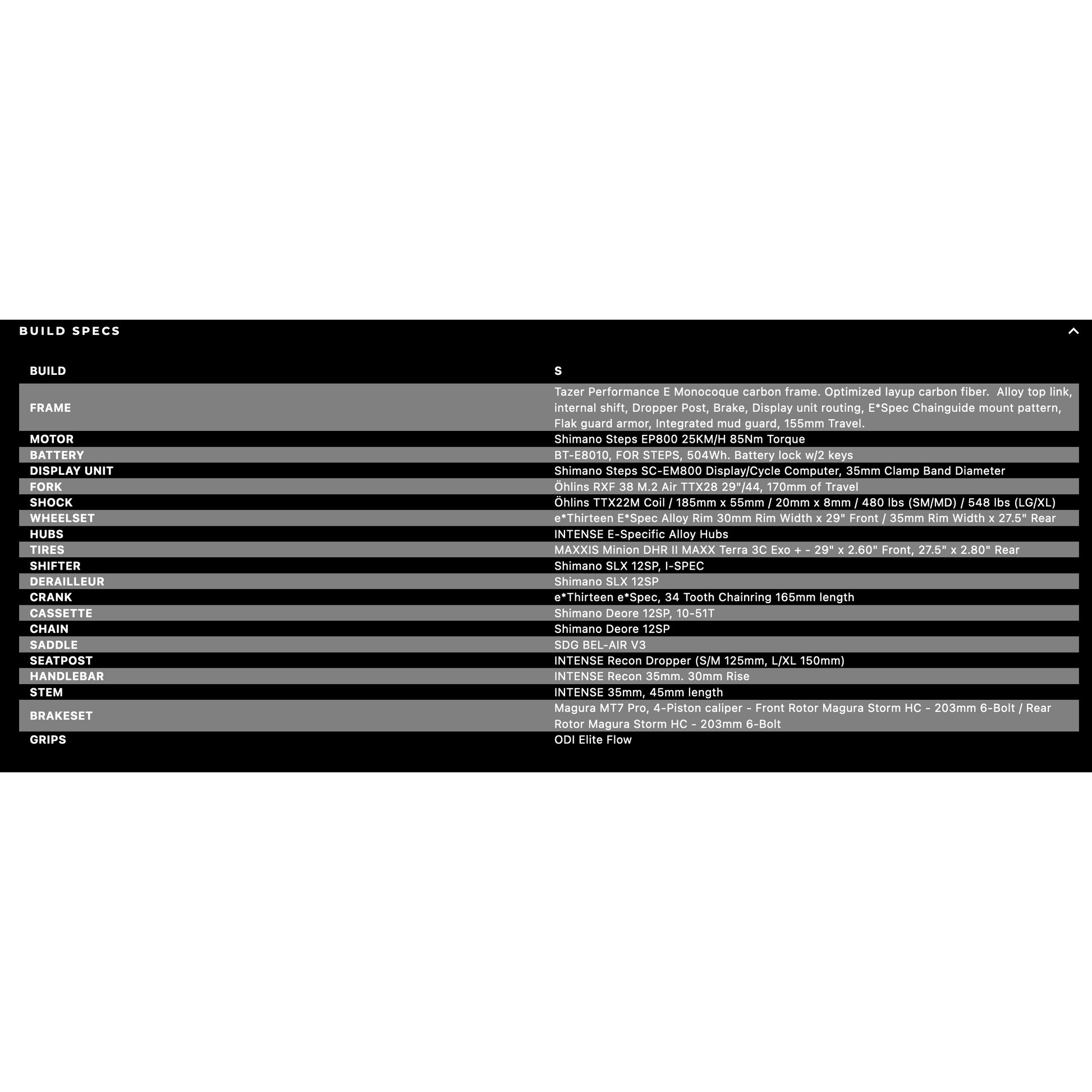 Con 160/155 mm de recorrido de la rueda delantera/trasera y el potente sistema de motor STEPS EP800 de Shimano, la Tazer es nuestra bicicleta eléctrica Enduro de alto rendimiento. Con una rueda delantera de 29" que absorbe los baches y una rueda trasera de más de 27,5" que busca tracción, obtienes un manejo excelente, un agarre fantástico y excelencia en la conducción por senderos. Con nuestro Tazer, nunca volverás a ver el ciclismo de montaña de la misma manera. Comerás vueltas en los loops de senderos locales, maximizando tu tiempo en su bicicleta. Puedes hacer tres o cuatro veces la cantidad de recorridos que normalmente haces en una bicicleta que no es eléctrica, maximizando sus habilidades en los descensos. La belleza del Tazer es que puedes ir tan duro o tan fácil como quieras.