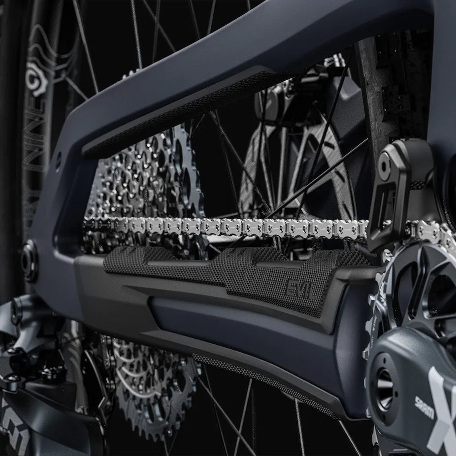 Los detalles restantes incluyen toda la materia oscura que vive en cada una de nuestras creaciones: enrutamiento de cables interno completo, una guía de cadena integrada y protectores de vainas de goma con cancelación de sonido.