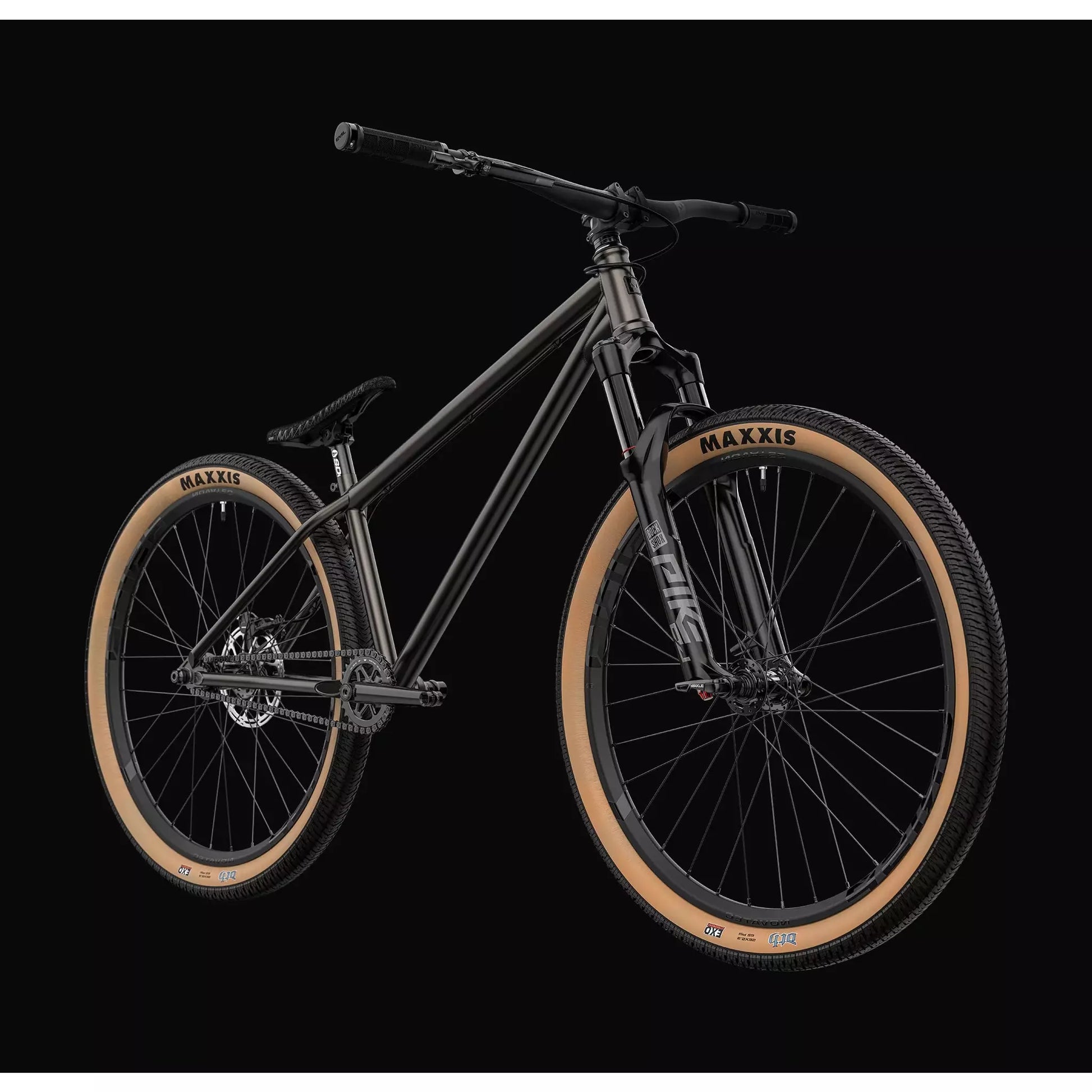 Hemos amplificado lo simplificado con esta serie limitada de compilaciones completas para ahorrarle algunos juegos de internet. Desde el estante superior, justo detrás de la botella de Patrone a medio vaciar, se encuentra el confiable tenedor RockShox Pike DJ. En su proa y popa, el Faction II hace girar un juego de aros Novatec Crisp de 26" calzados con la banda de rodadura Maxxis DTH para agarrarse a la tierra o al concreto. Una cabina totalmente Evil está preparada para ese parque de patinaje o sendero que se adentra en el éter, y un un solo tapón SRAM G2 lo alejará del borde.